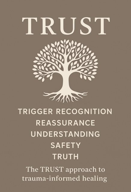 I created the TRUST approach because I saw how often people in survival states were misunderstood. Instead of being supported, they were judged, dismissed or pathologised. I wanted a simple, compassionate framework that anyone could remember - whether in therapy, school, or everyday life - to help guide people back to regulation and safety.